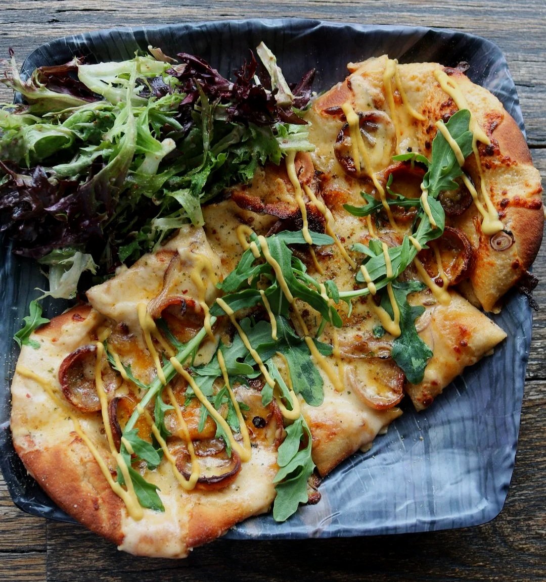 House Beer Cheese Base / Hot Italian Sausage / Smoked Cheddar / Onion / Arugula / Dijon