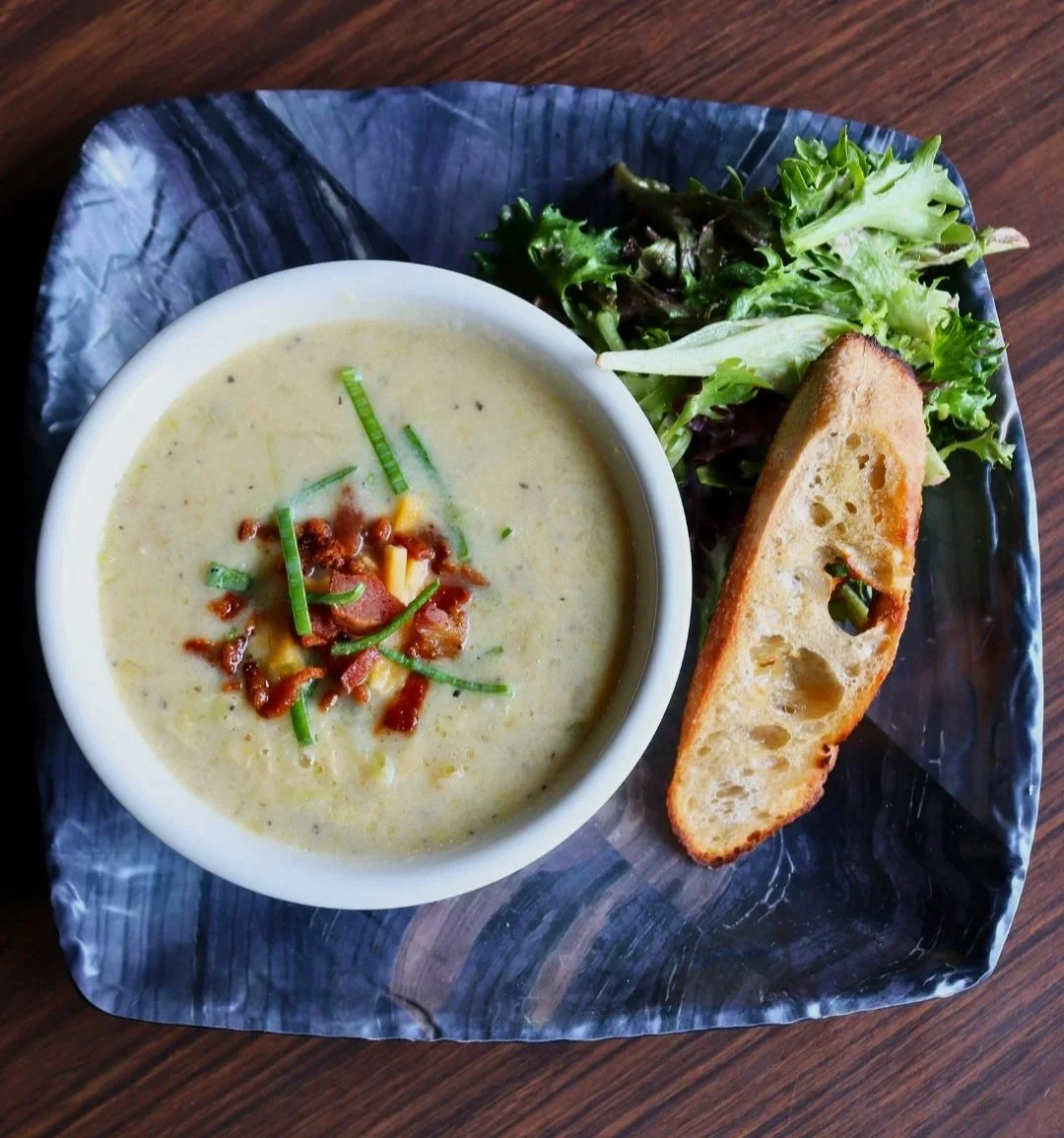 Potato / Cabbage / Leek Topped with Smoked Cheddar / Benton’s Bacon Crumbles / Leek Greens
