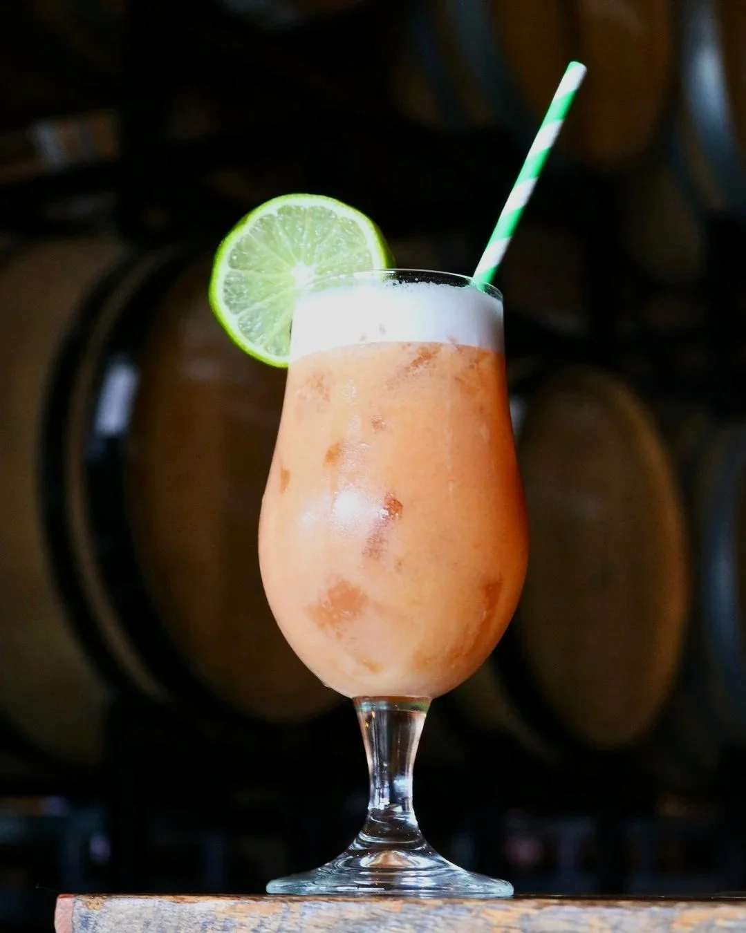 Denizen Vatted Dark Rum / La Pulga Sotol / Chinola Mango, Passion Fruit & Pineapple Liqueurs / Lime / Coconut Syrup / Oak-Aged Red Fruit Sour Beer / Mesquite / Salt / Ginger Turmeric Bitters