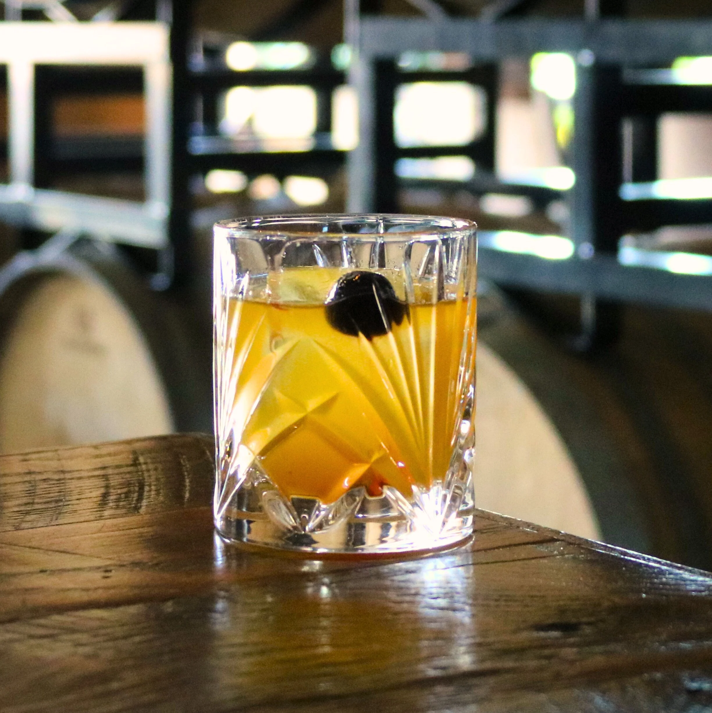 Company Distilling Apple Wood TN Whiskey / Underhand Chinese Five Spice Amaro Villon Spiced French Cognac Liqueur / Lemon / Oak-Aged Burnt Orange Shrub / Spiced Oak Bitters Toasted Cinnamon Stick / Orange Peel